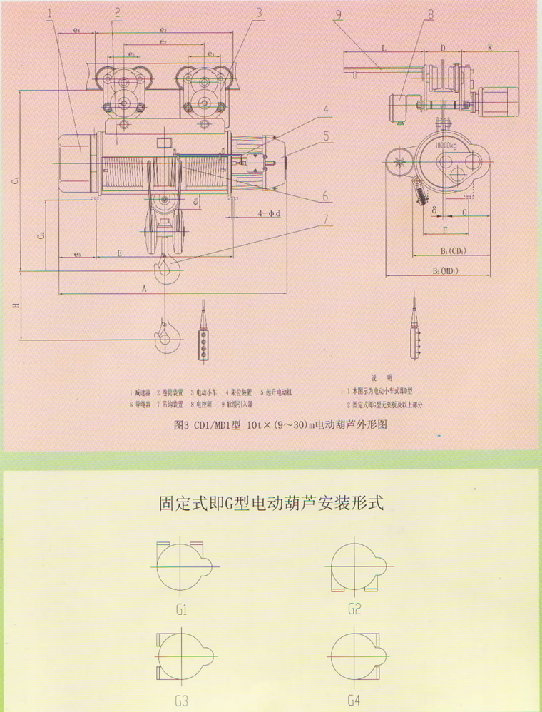 CD(MD)改進(jìn)型產(chǎn)品,質(zhì)量更加可靠:1、主要用途及適用范圍CDF(MDF)型鋼絲繩電動(dòng)葫蘆,根據(jù)GB3811《起重機(jī)設(shè)計(jì)規(guī)范》和JB/T9008.1~9008.6《鋼絲繩電動(dòng)葫蘆》在原CD、MD型基礎(chǔ)上的改進(jìn)型產(chǎn)品,該葫蘆有固定式和小車式兩類。小車式葫蘆可安裝在多種形式的起重機(jī)上或懸掛在工字鋼梁上,直線或曲線往復(fù)吊運(yùn)重物,固定式葫蘆可安裝在固定支撐上作垂直的或不同角度的卷揚(yáng)起吊用。工作級別M3~M4,適用于接電持續(xù)率25~50% 、每小時(shí)接電次數(shù)120~300次等頻繁起制動(dòng)狀態(tài)工作。 2. 工作條件海撥不超過1000m。環(huán)境空氣溫度為-25℃~+40℃。 環(huán)境空氣相對濕度不超過85%(+25℃),無腐蝕性氣體,不宜吊運(yùn)高溫或有毒、易燃和易爆物品。 電源額定電壓為380V,額定頻率為50Hz。